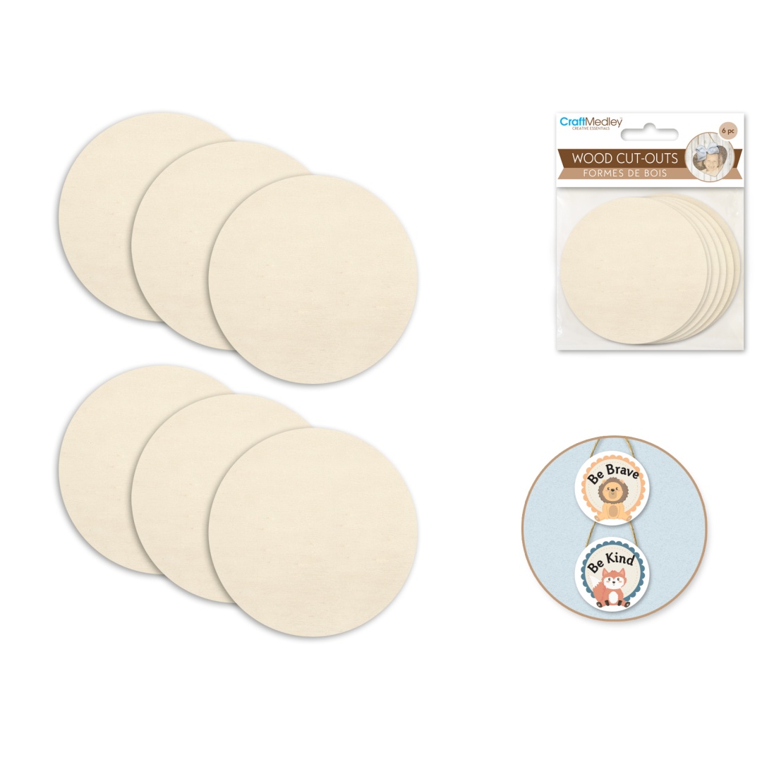 Craftwood Round 6pc. Wood Cut-Outs 7.1cm.
