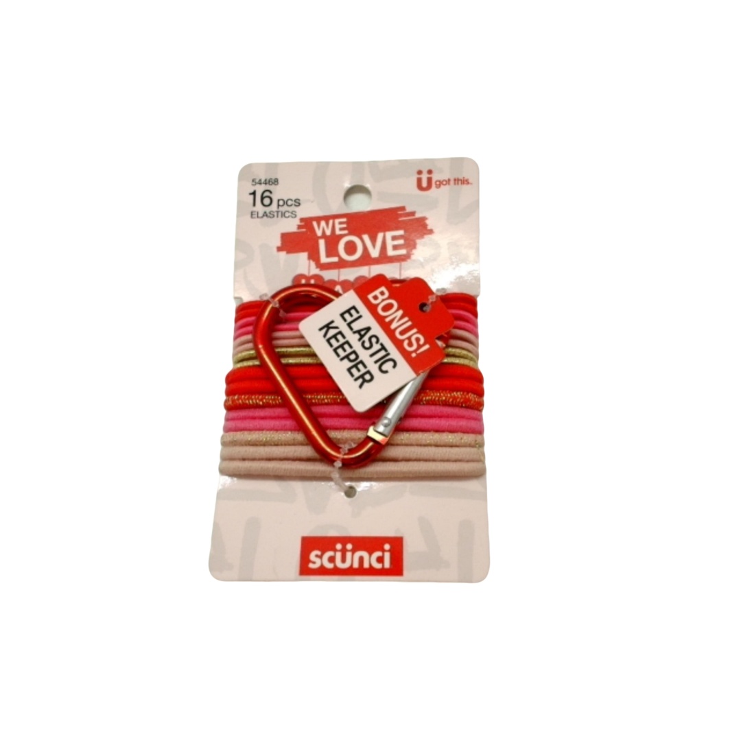 Hair Elastics 16pk. Valentines W/elastic Keeper Scunci