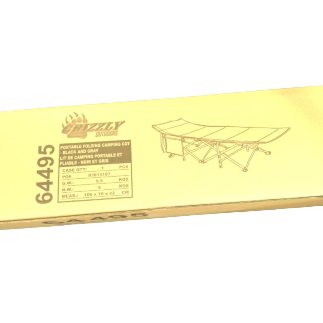 Portable Folding Camping Cot Black & Grey Grizzly Outdoors