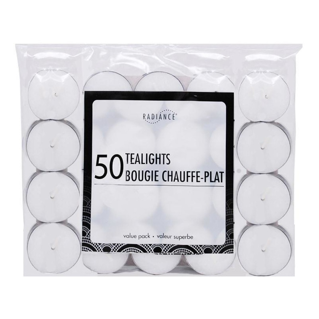 Tealights White 50PK-9GM BAGGED 3 HOURS RADIANCE (promo)
