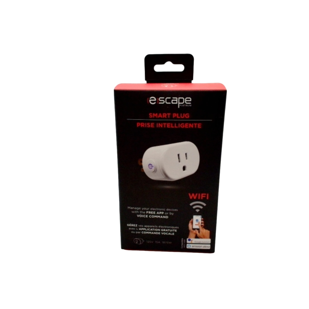 The Escape socket allows you to manage your electronic devices via Wi-Fi with the free application of or by voice command from the car or elsewhere in the world. . Program and manage home and office electronics with one touch . No hub required works with your Wi-Fi network . Quick setup . Manage your electronic devices with the free app or by voice command Specifications: 125V 15A 1875W System requirements 2.4 GHz wireless router Mobile device running iOS8.1 and newer or Android4.4 or newer