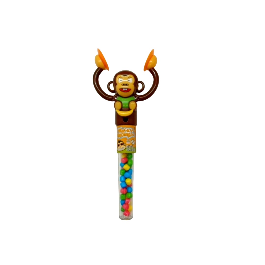 Kidsmania Wacky Monkey Candy Has A Funny Monkey Toy On Top Playing The Cymbals. There Is A Banana-Shaped Button Located In Front So That You Can Spend Hours Of Fun Not Only Eating The Treats But Playing With The Toy On Top. The Candy Fills The Container To The Brim For A Sweet Treat That Children Enjoy. Both The Container And The Contents Inside Showcase Many Bright Colors That Are Fun And Attractive. It Is A Nice Distraction For Road Trips And Other Times When You Need To Keep Children Occupied.