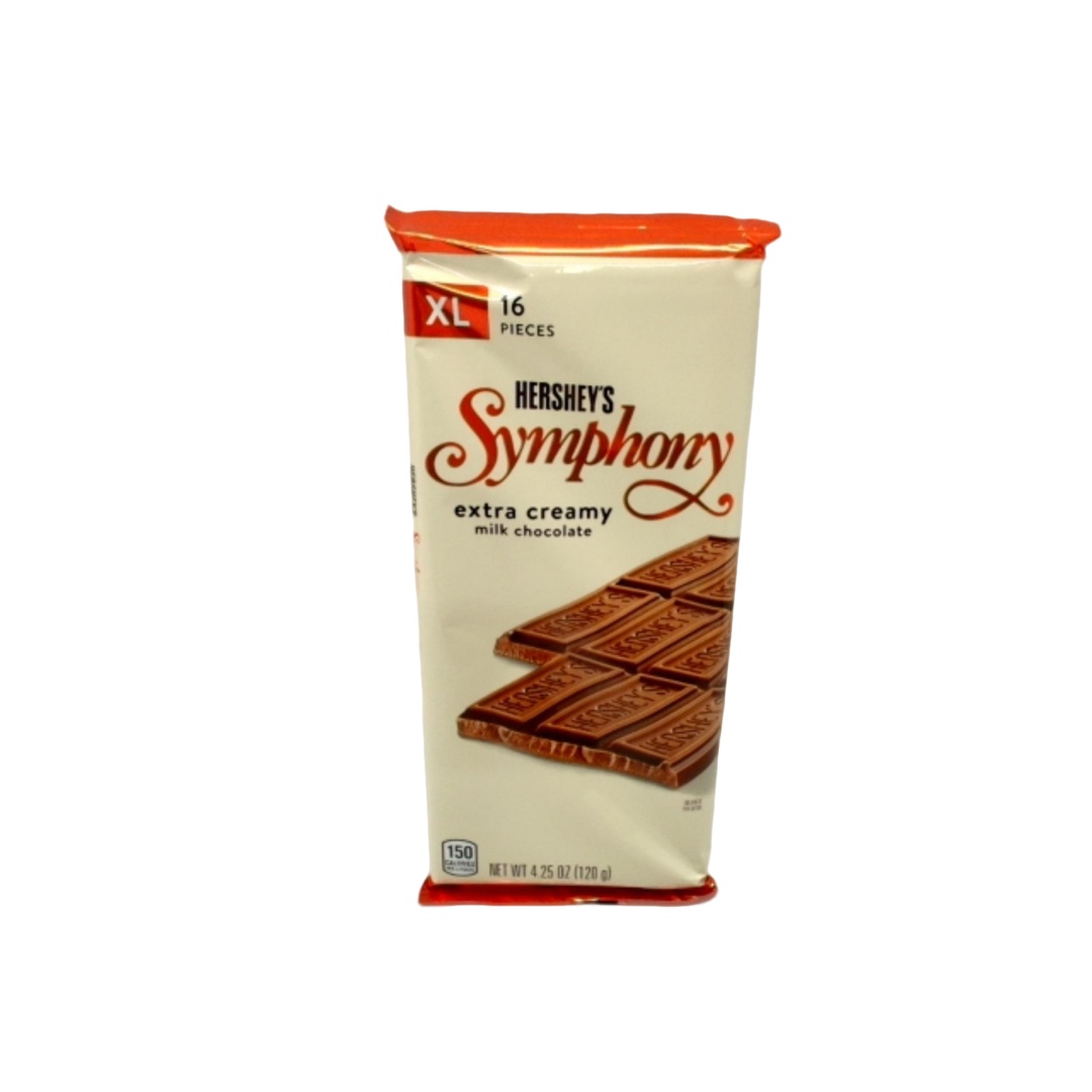 It s a candy bar so good you ll start to hear sweet melodies! The HERSHEY S SYMPHONY XL candy bar features extra creamy milk chocolate creating the perfect harmony of flavors. Keep an extra large bar with you at home or work and you ll always have a decadent treat within reach. HERSHEY S SYMPHONY extra creamy milk chocolate is a delicious candy to enjoy on your own or share with friends and family members on any given day.