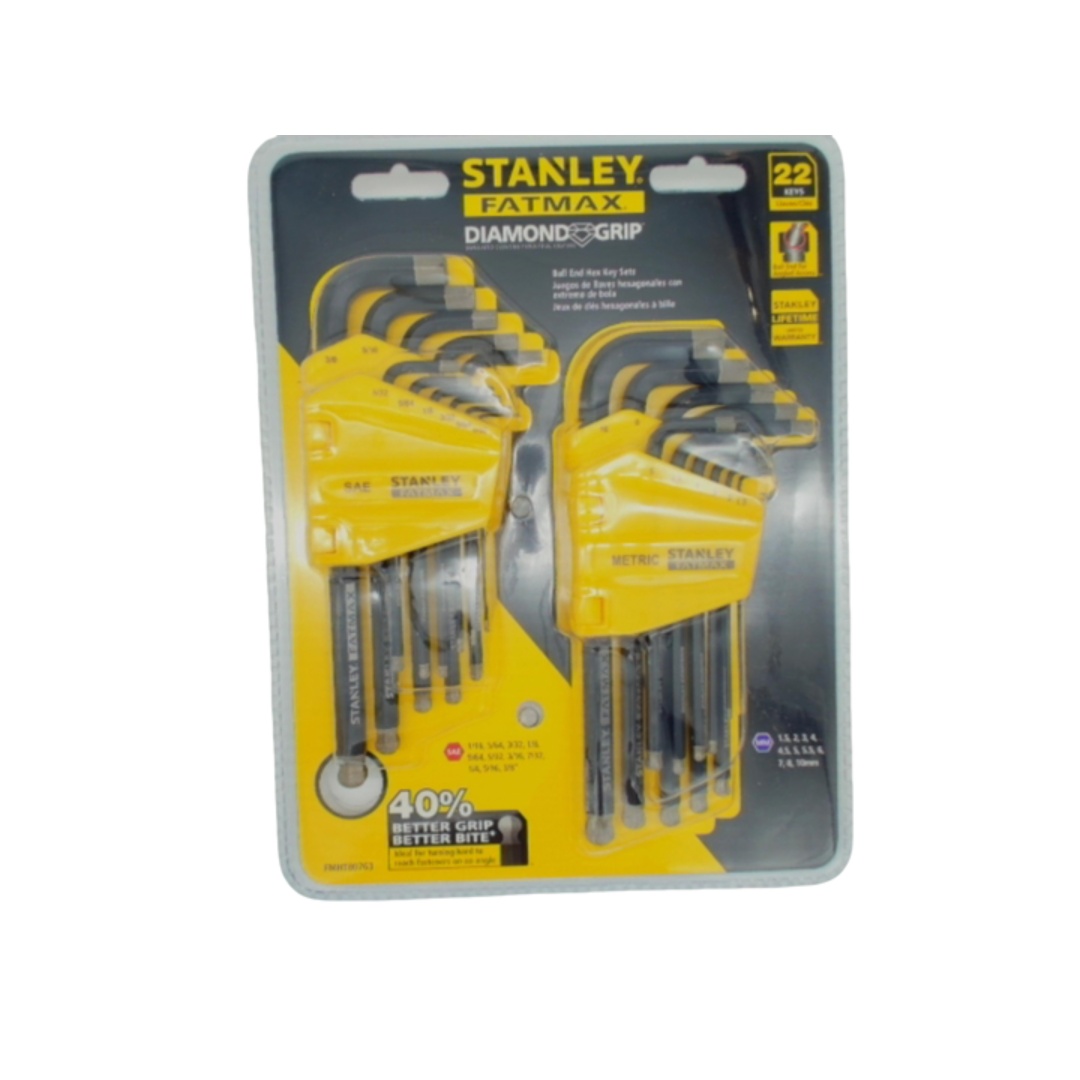 22pc. Hex Key Set SAE & Metric Diamond Grip Stanley