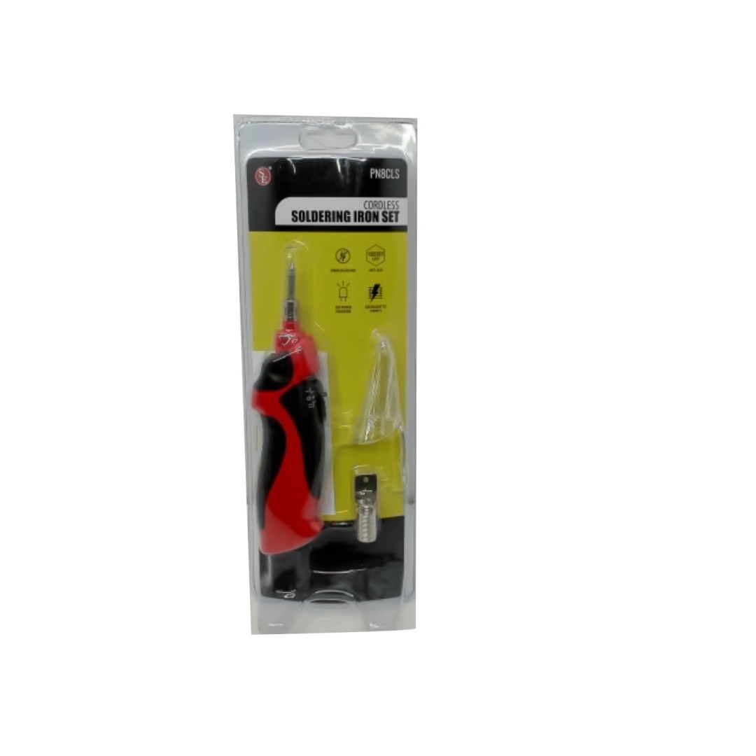 Repair small electronics on the go with the Universal Tool 8 Watt Cordless Soldering Iron! This handy tool is essential for any hobbiest or crafter. It features an anti-slip rubber grip for effortless soldering and comes with a protective cap to prevent the iron from being unintentionally turned on. It also comes with a tip remover and solder! The soldering iron will reach a maximum temperature of 900 degrees F (480 C) and requires 3 AA batteries (not included). Make sure to grab one of these to add to your tool box or workshop!