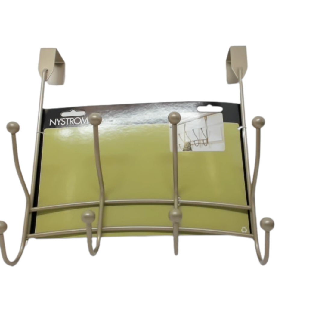 Features: Designed to hold a wide variety of items such as coats hats back packs scarves purses and bags Solid metal construction adds durability and a high-end feel Contemporary design gives a sleek and simple style Simple over the door installation with no screws required Specifications: Height: 12.9921 Width: 12.622 Projection: 3.315 Number of Hooks: 4 Material: MetalAvailable Finishes: 11421 (This Model): Pewter 11443: Chrome 12401: White