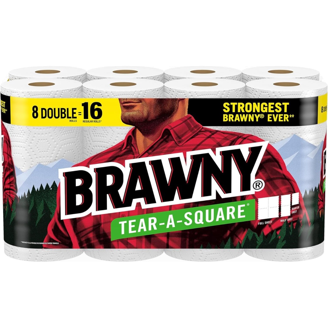 NEW! Conquer messes like never before with Brawny 3-Ply Tear-A-Square Paper Towels! The only 3-Ply premium paper towel, and the strongest on the market.* Every 3-Ply sheet combines unmatched strength, incredible absorbency, and long-lasting durability*-all in one versatile paper towel roll. And with the Brawny Tear-A-Square feature, you can use just what you need for the task at hand and reduce waste. From full-on disasters to everyday mishaps, Brawny Tear-A-Square Paper Towels are made for the messes you don't see coming. Whether it's tackling stubborn bathroom grime like toothpaste clumps and soap scum, handling pet accidents and muddy paw prints, or scrubbing burnt-on grease from the grill, Brawny Paper Towels has your back. Plus, they're made from responsibly sourced trees and certified by the Sustainable Forestry Initiative,** so you can feel good about your choice without sacrificing strength or performance. Choose Brawny Paper Towels today and experience the cleaning power that helps you handle whatev