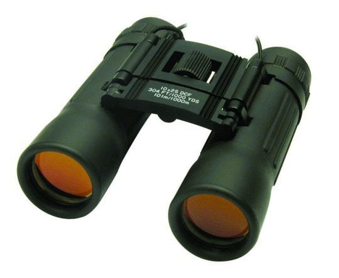 The SE Binoculars 10x Magnification 25 mm Lens feature a black non-slip rubberized body which allows you to securely hold the binoculars. You will not have to miss any precious moment of action with these binoculars while hunting fishing star gazing bird watching boating traveling watching sporting events safaris traveling or whenever you need to look more closely someplace. These binoculars also feature a K9 roof prism which provides enhanced contrast clear and crisp viewing. They have a convenient black carrying case for traveling and storage. This product also includes a lens cleaning cloth to keep your lens clean and free of dust and marks. SE is committed to providing the customer with the best source for value possible on the market. You will enjoy the quality function and usefulness of our SE Binoculars 10x Magnification 25 mm Lens.