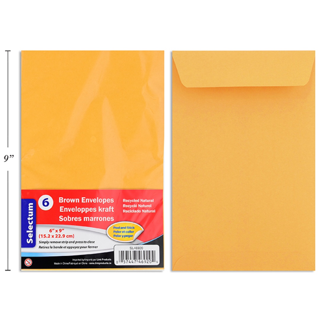 ENVELOPES BROWN 6X9 6/PKG 95GMS"