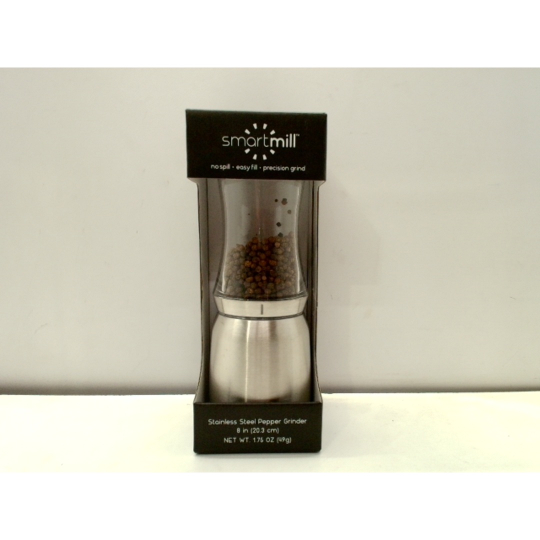 This Kamenstein Stainless Steel Smart Pepper Mill is an attractive way to display pepper in your kitchen and add flavor to meals right at the table without any messes. Mill is specially designed so that the bottom closes once you have stopped grinding so no unwanted pepper residue will be left behind. It gives you a precision grind every time and is adjustable for fine to coarse grinding. The wide mouth and removable cap allow for easy refilling. Measures 8 inches tall. Wipe clean with a slightly dampened cloth or paper towel; do not immerse in water.