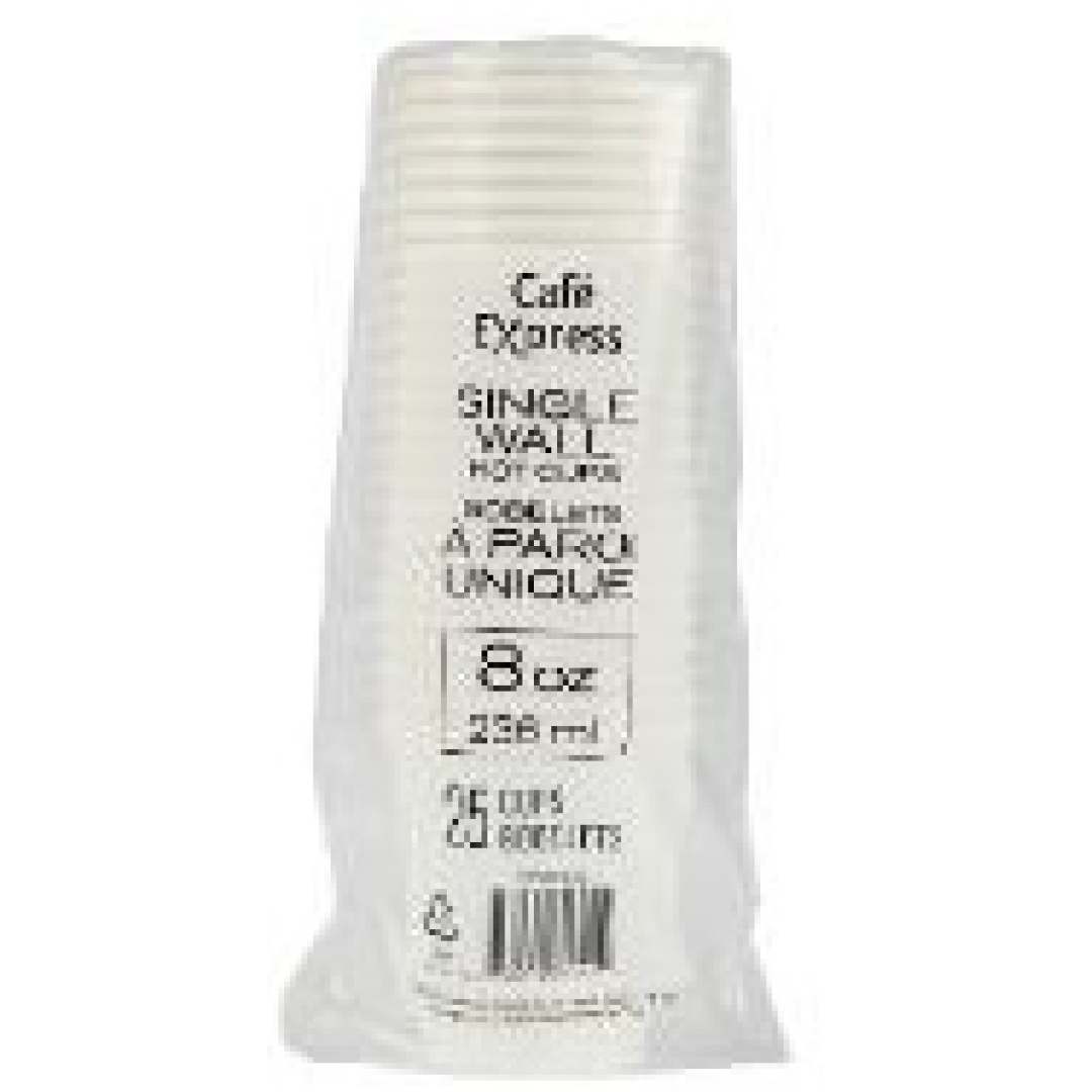 HOT CUPS 8OZ WHITE SINGLE WALL 25/SLEEVE CAFE EXPRESS