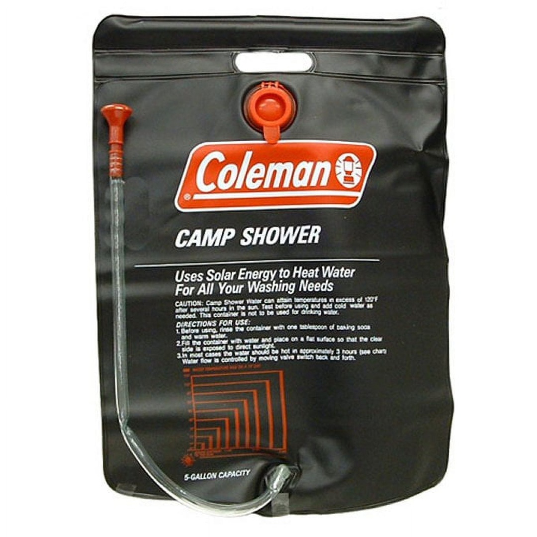The Solar Heated **Coleman Shower Bag** is the perfect portable lightweight shower device for all your camping clean up needs. The black PVC coating absorbs sunlight and allows you to take warm comfortable camping showers. This product features a handy on/off valve and 5 gallon capacity to allow for multiple showers! Experience a clean and comfortable camp site by purchasing your **Coleman Shower Bag** today! Coleman designs and manufactures fine outdoor & camping products that embrace the latest technological innovations. Coleman focuses on developing quality products that are affordable and functional for all of your outdoor occasions!