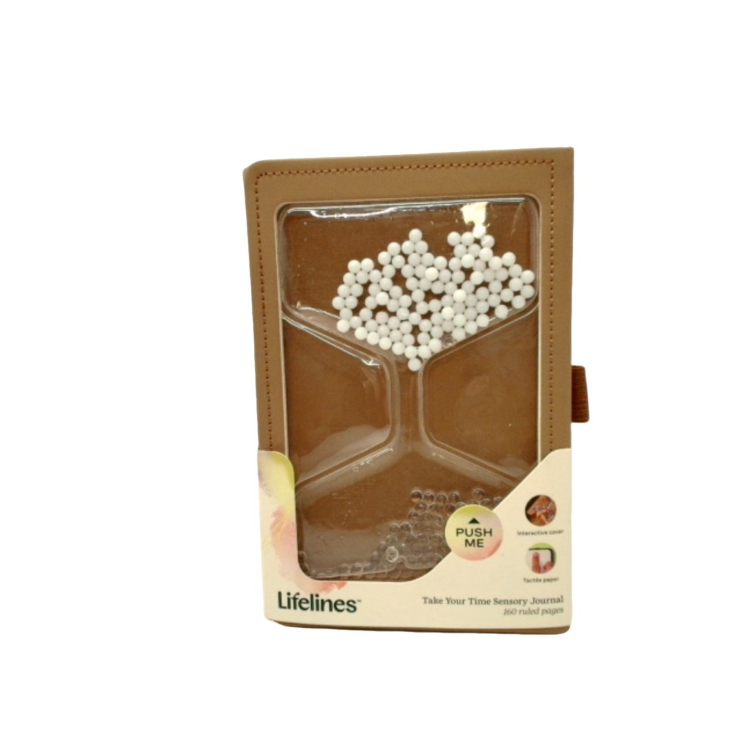 Spark your creativity with our Sensory Journal Bundles thoughtfully designed inside and out with an interactive maze and embossed patterns along page margins. Delight as you push the gel beads through the maze or rub the nature-inspired tactile pages to focus your attention and quiet your mind. Includes 160 ruled pages elastic band pen holder and ribbon marker. Pair with the Pen Diffuser to create a multi-sensory experience.