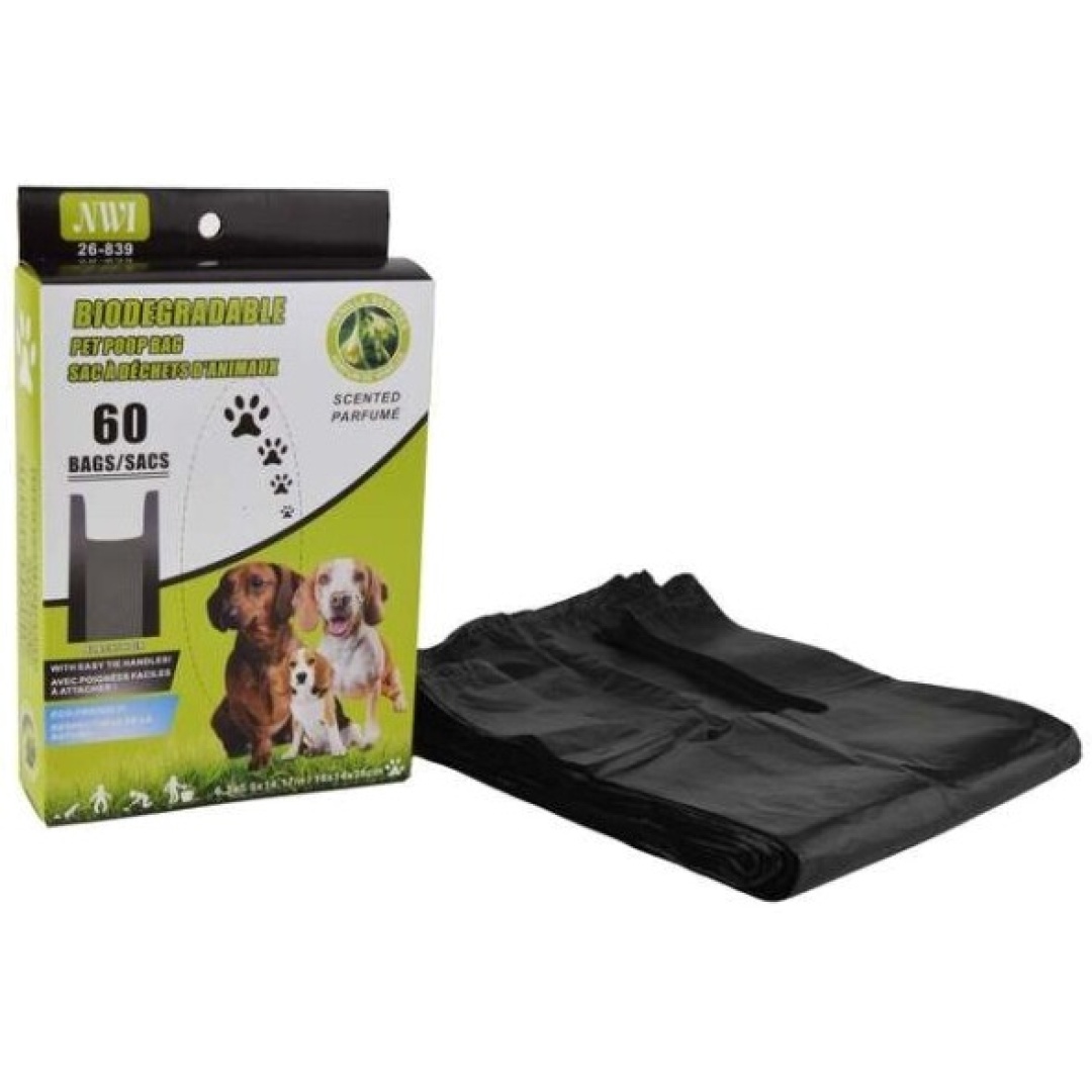 Pet Waste Bags 60Pk w/ Handle Black NWI