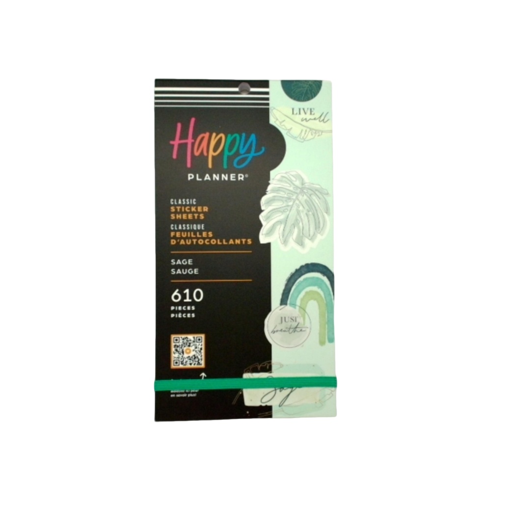 All about sage. This Value Pack Sticker Book has 30 sheets with 610 stickers. Add these stickers to your Happy Planner guided journal notebook Memory Keeping Journal or bullet journal to help you prioritize your tasks and decorate your spreads! Create earthy spreads with these shades of green decorative trims memo boxes transparent quotes and gold foil stickers.