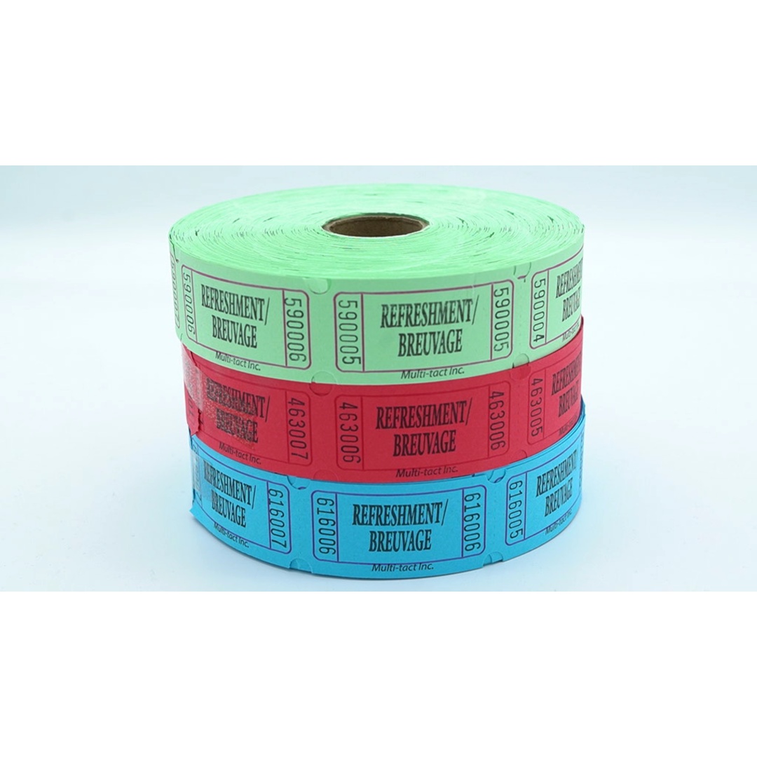 Refreshment Tickets Rolls Of 1000 Multi Colour