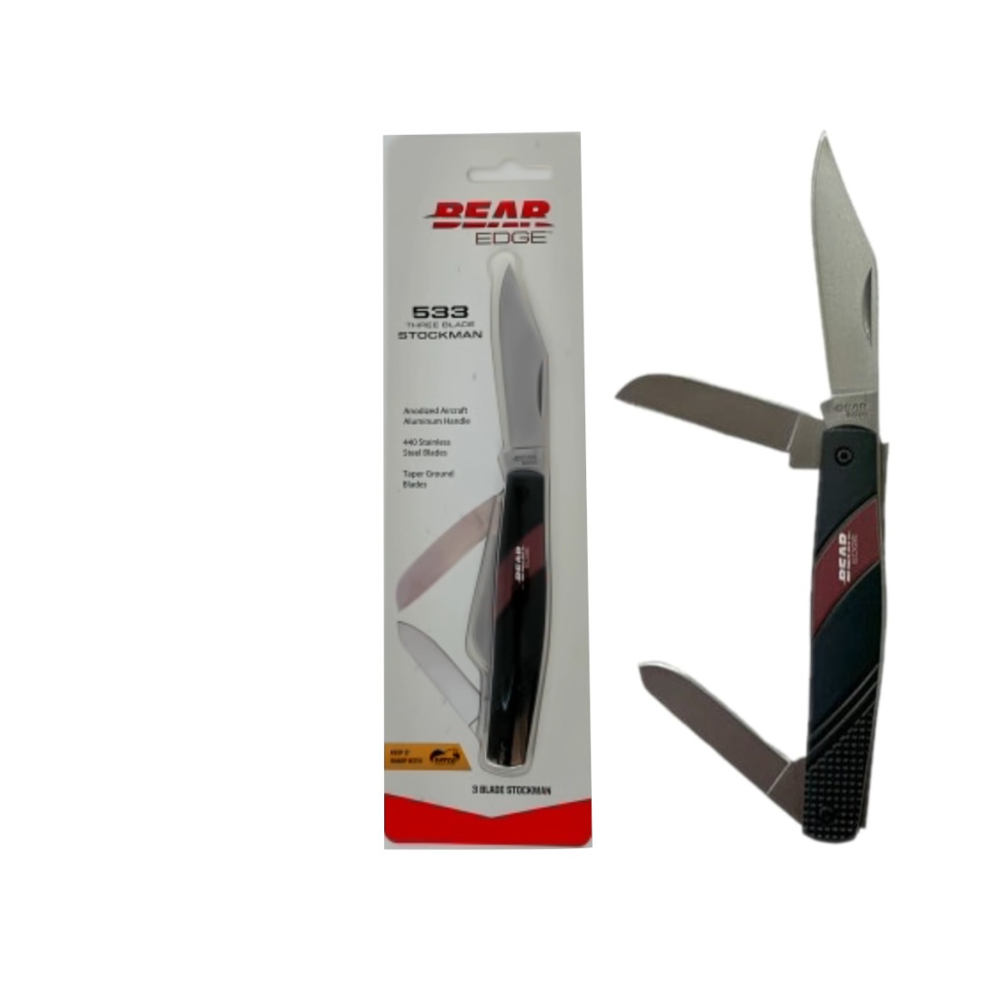 Three Blade Stockman Knife Aluminum Handle Bear Edge