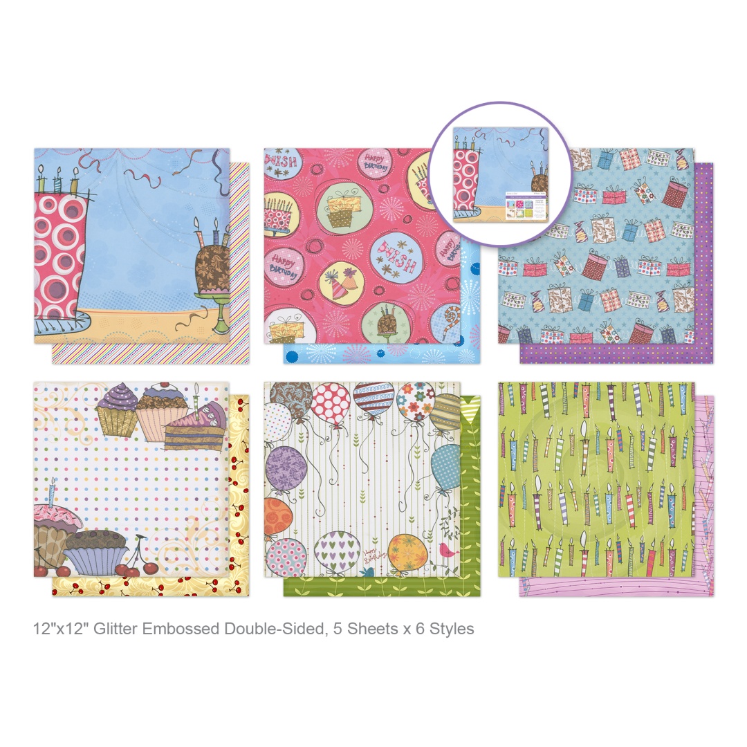 Cardstock: 12x12" Glitter Embossed Dble-Sided 5eax6styles Happy Birthday"