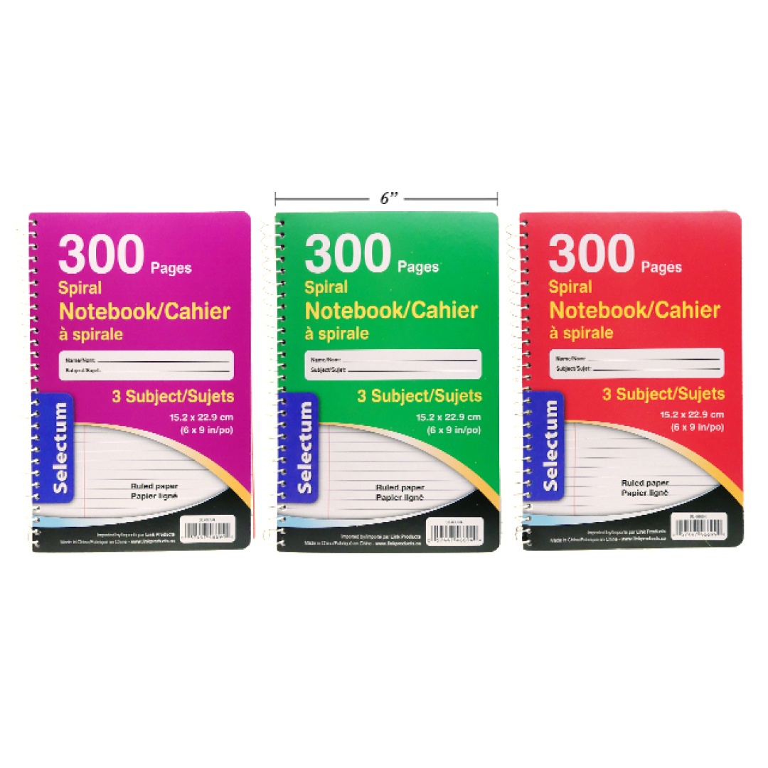 Exercise Book 6x9 Coil 3 Subject,300 pages"