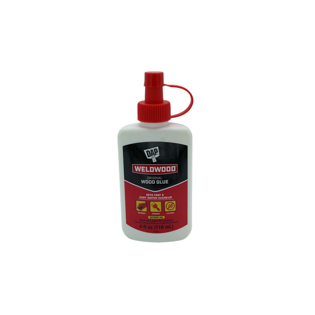 This DAP Weldwood Original wood glue is a professional grade premium glue that provides fast strong bonds for most porous and semi-porous materials. ? Quality aliphatic resin wood and multi-purpose glue providing a high-strength bond. ? Comes in capacity of 4 fl. oz. ? Color: yellow. ? Nontoxic low-VOC. ? Sets fast grips tight sands easily when dry. ? Interior use. ? Heat- water- and solvent-resistant. ? WARNING: Cancer and Reproductive Harm-www.P65warning.ca.gov. ? Sold as 1 Each.