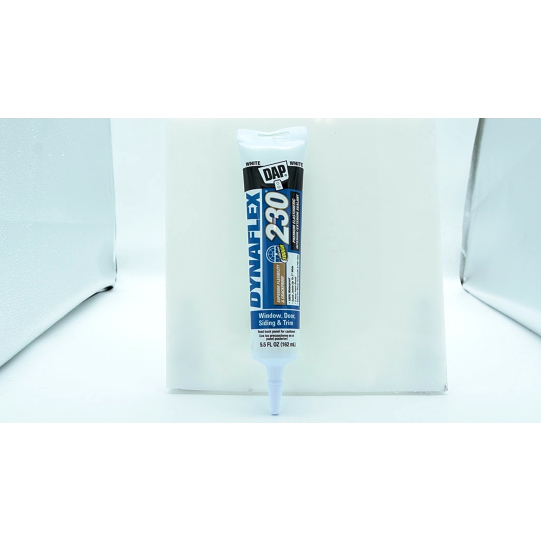 DAP Dynaflex 230 Premium Elastomeric Sealant is a silicone tough latex sealant that offers outstanding exterior performance against the elements. Developed for flexibility and crack proof performance this sealant endures expansion and contraction without cracking or losing its seal. Paintable in 2 hours and dries to a 100% waterproof and weatherproof seal. Exceeds ASTM C920 Class 25. Cleans up easily with water and has low odor. White in color this unit is 5.5 oz.