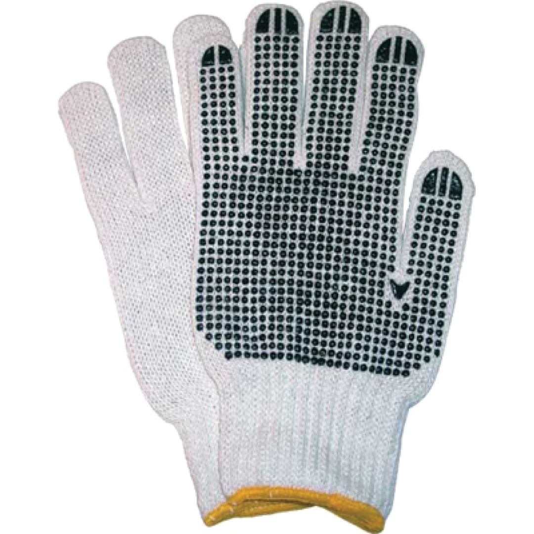 Gloves knitted cotton blk dots yellow doz M
